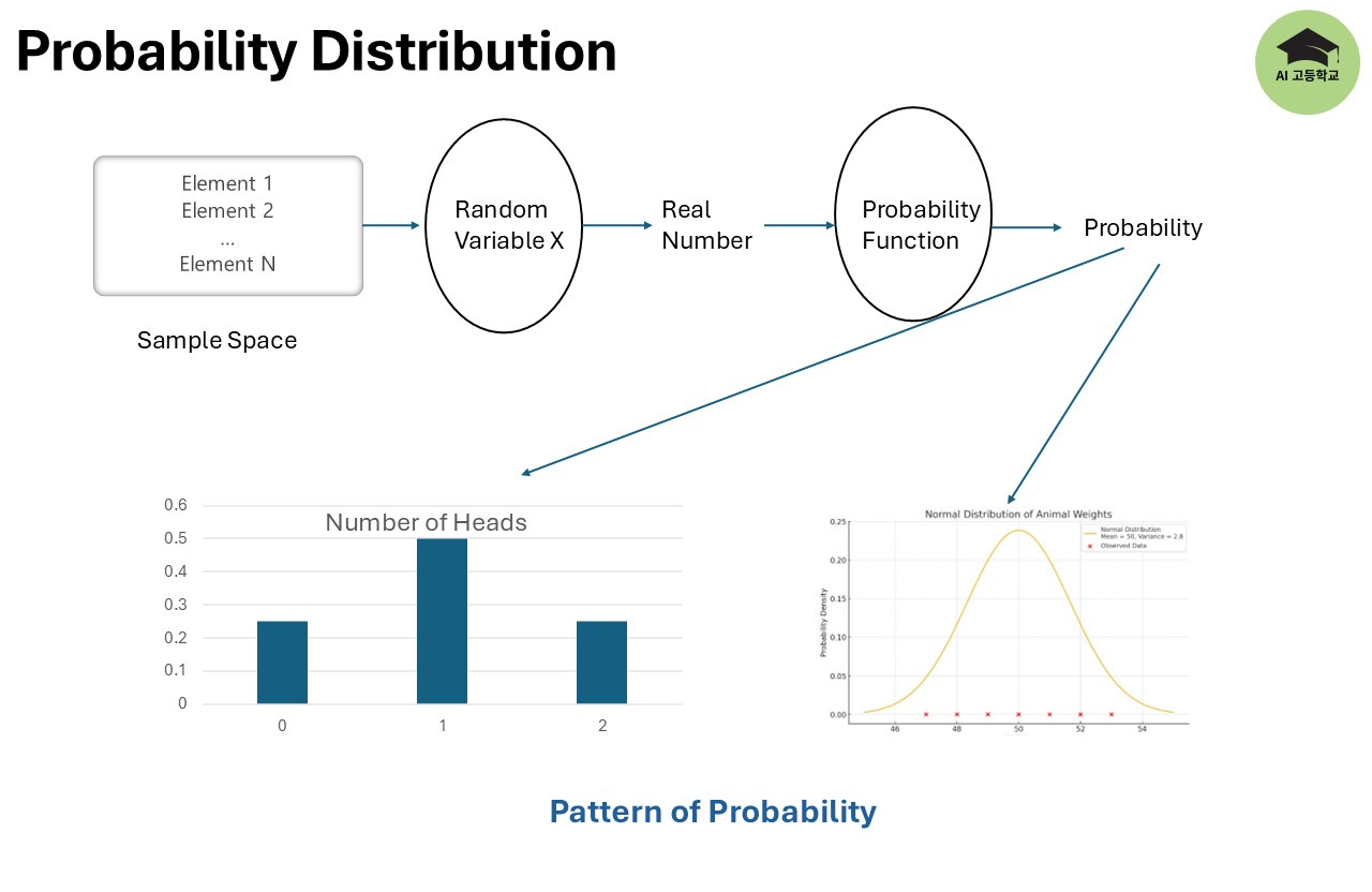 𝑋(𝐻) = 1, 𝑋(𝑇)= 0 - 즉, 표본공간 {𝐻,𝑇}를 실수 {1,0}으로 변환하는 역할을 합니다.